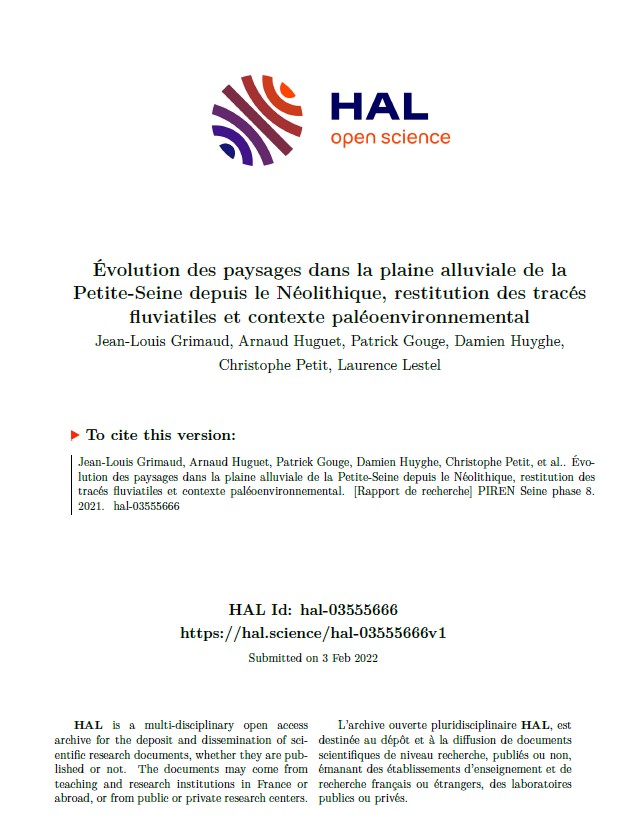 Les plaines alluviales sont des entités dynamiques du point de vue géomorphologique. Elles se construisent par sédimentation lors des crues, générant aussi les déplacements et abandons des réseaux de rivières. On retrouve donc à la surface des plaines alluviales des chenaux abandonnés remplis de sédiments fins qui constituent non seulement des témoins des paléo-tracés fluviatiles mais aussi des archives paléo-environnementales. Dans cette étude, nous investiguons les paléo-chenaux de la Petite-Seine, dans la plaine alluviale de la Bassée entre Nogent-sur-Seine et Montereau-Fault-Yonne. Une cinquantaine de sondages mettent en évidence les changements du cours de la Seine d’un chenal à autre avec des évidences de réactivation et de fonctionnement suivant un mode anastomosé. Les datations radiocarbones permettent de préciser ce calendrier depuis le Néolithique, et peuvent localement suggérer l’action anthropique sous forme de curage. Enfin, une première reconstitution des paléo-températures par la méthode des tétraéthers bactériens permet de restituer les variations climatiques associées à l’évolution de la plaine sur les derniers 1800 ans.